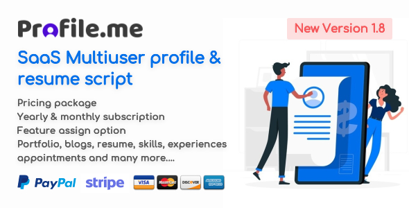 Download Best Seller “Profile.me – Saas Multiuser Profile & Resume Script” from Codecanyon for category “php-scripts”. Related Tags: cv, cv script, earning script, modern resume, multiuser, personal profile, portfolio, profile manager, resume, resume script, saas, saas multiuser, Saas platform, saas profile, saas resume